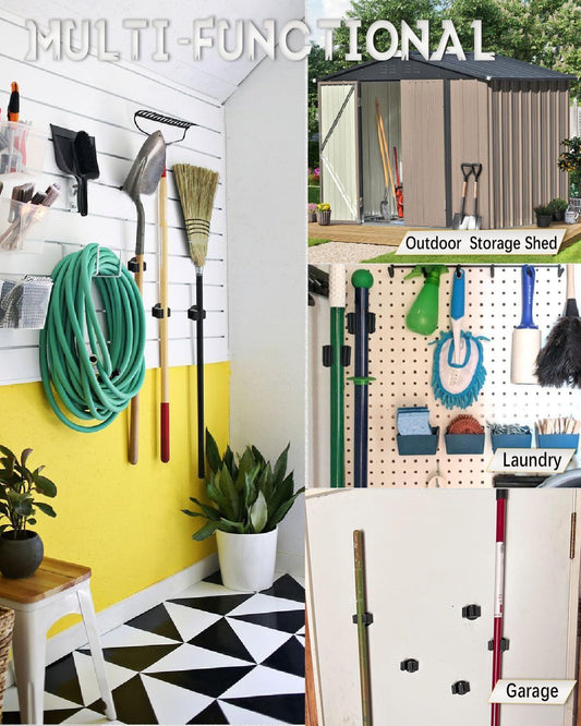 Magnetic Broom Holder, Steel Mop Mount No Drilling Magnetic Holder for Garage Tools, Anti-Slip Utility Mount for Garage, Kitchen, Laundry Tools Organizer and Management - 5 Pack/Black