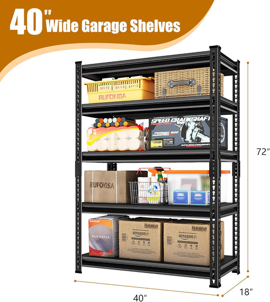 40" W Garage Shelving Heavy Duty,2000LBS Loads Adjustable Garage Storage Shelves, 5-Tier Metal Shelving Units and Storage Racks Heavy Duty, 40”W x 18”D x 72”H,Black