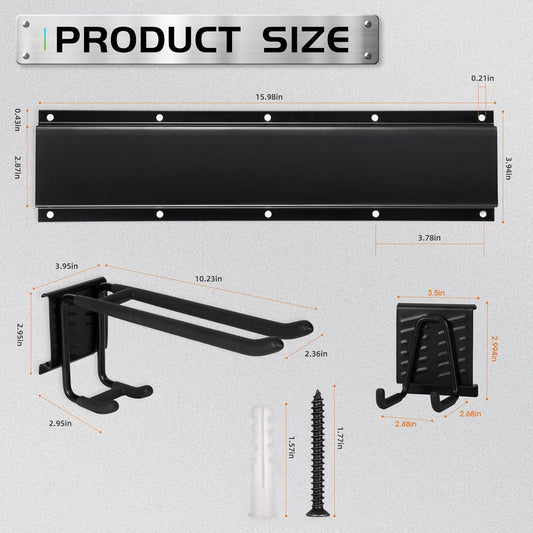 Garage Organization Garage Wall Organizer-Garage Tool Organizer Wall Mount 48in with Adjustable Metal Hooks,Max 440Lbs Yard Tool Organizer,Garden Tool Storage for Shovels Broom Folding Chair,Black