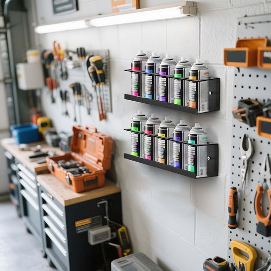 Wall-Mounted Spray Can Holder Rack Organize, 4 Pack Black Steel Aerosol Can Holder with Straw Groove, Spray Can Organizer, Aerosol Can Rack, Spray Paint Can Holder for Garage, Shop, Home and Workspace