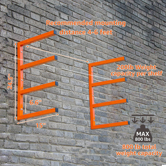 YYR Wood Organizer and Lumber Storage Rack Wall Mount, Heavy Duty Metal Shelf with 4-Level Holds Up 800 LBS, Indoor & Outdoor Use - Orange
