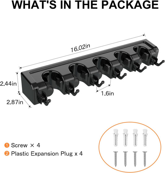 9PCS Broom and Mop Holder, Heavy Duty Garden Tool Organizer Rack Rake and Shovel Handle, Stainless Steel Mop Hanger. Screws for Wall Mounted. Matte Black