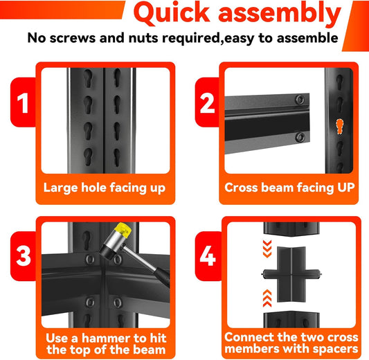 55''H Garage Shelving 2400LBS Heavy Duty Shelving Units, Garage Storage Shelves Adjustable 4 Tier Metal Industrial Shelf for Kitchen, Utility Room and Basement, Black (13.78''Dx35.43''Wx54.33''H)