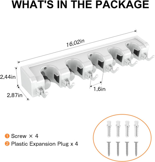 nacena Broom Holder Wall Mount, 2 Packs White Wall Hanging Garden Tool & Utility Closet Organizer Mop & Broom Hook Wall Mounted Heavy Duty Broom and Mop Organizer Wall Hanging for Bathroom, garage