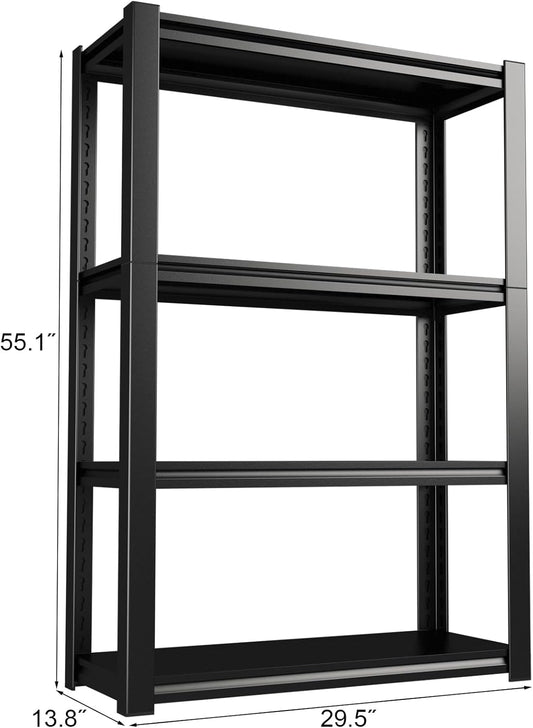 Garage Shelving Unit, Heavy Duty 4-Tier Adjustable Storage Shelf, Steel Shelving,2000 lbs Capacity, Industrial Shelves for Heavy Tools and Equipment, 59" H x 24" W x 14" D,Black