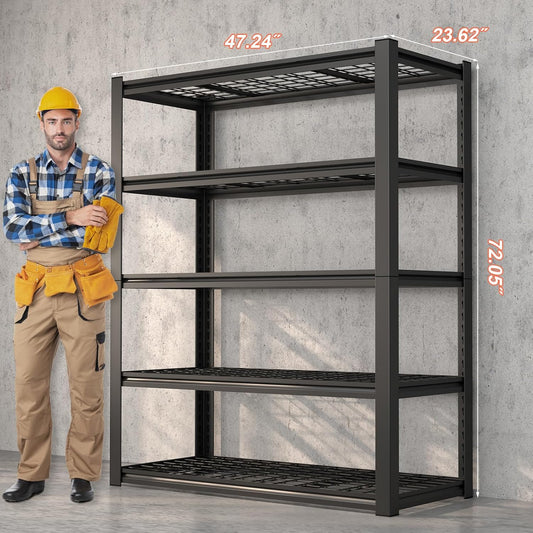 Heavy Duty Shelving,5-Tier Metal Storage Shelves,Metal Shelves for Garage Storage,Steel Shelving 24" D x 47" W x 72" H
