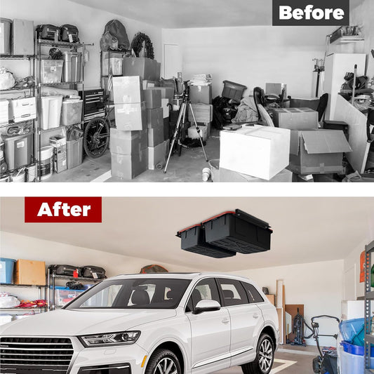 Overhead Garage Storage Rack System – Heavy-Duty Adjustable Ceiling Rails for Totes, Fits Most Storage Bins (8 Sets Hold 4 Bins Each)