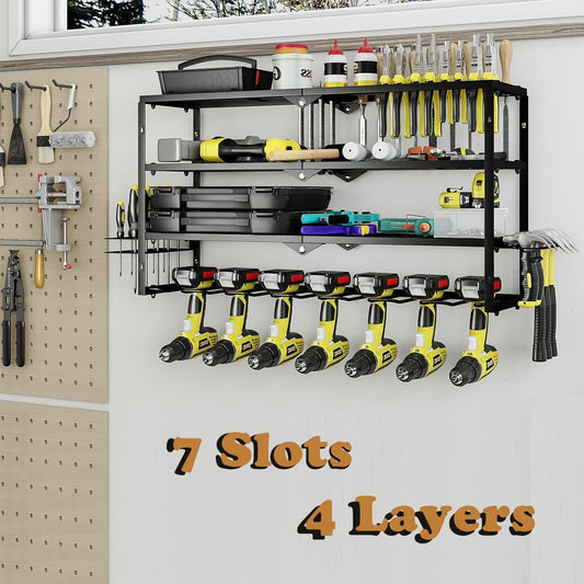 AZERPIAN Tool Organizer Heavy Duty Power Wall Mount for Drill and Cordless Tools Heavy Duty Rack for Garage Organization Workshop Pegboard (3 Layers 7 Slots)