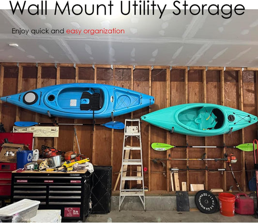 6 Pack Garage Hooks Heavy Duty, 15" 100LB Stainless Steel Wall Mount Kayak Storage Rack with EVA Pads for Hanging Indoor/Outdoor, Garage Storage Organizer for Hang Ladders Folding Chair Bike