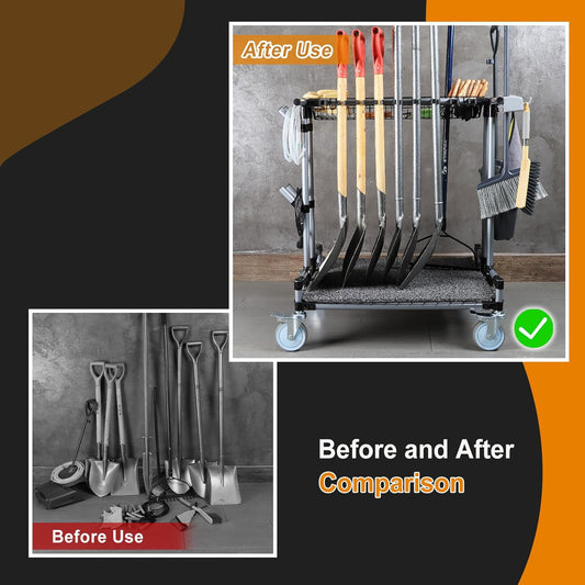 Heavy-Duty Garden Tool Organizer Cart Ideal for Gardening, Upgraded 5-Inch Wheels for Lawn & Sand, Long-Handle Tool Storage