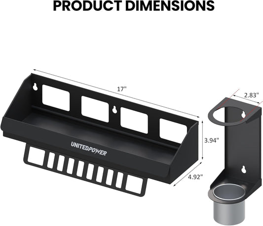 UNITEDPOWER 5 Aerosol Spray Can/Paper Towel Holder, Paint Bottle Storage Rack, Steel Wall Mount Shelf, Tool Organizer for Garage, Craft Workspace and Home