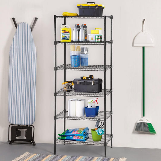 16''Lx42''Wx72''H 6 Shelf Wire Shelving Unit Heavy Duty Metal Storage Shelves NSF Wire Shelf Organizer Black Height Adjustable Utility Steel Commercial Grade Layer Shelf Rack 1500 LBS Capacity