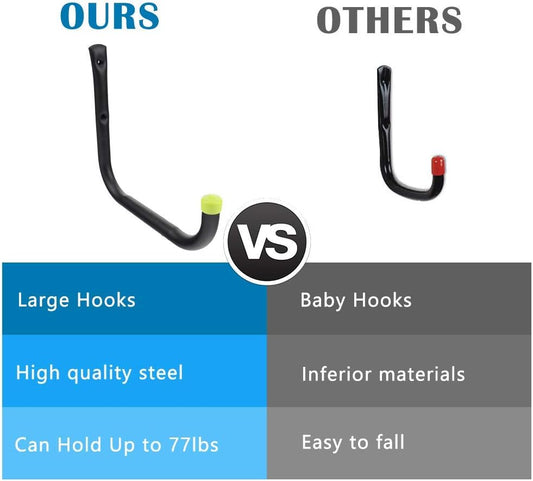 Heavy Duty Garage Hooks 4 Pack, J Shaped Hanger, Wall Mounted Storage System, Power and Garden Tool Organizer, for Hanging Ladders, Bikes Tires, Hose, Bulk Items