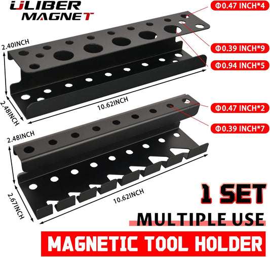 ULIBERMAGNET Magnetic Screwdriver Holder,Magnetic Wrench Holder,Heavy Duty Black Metal Tool Storage Organizer,Set of 2 Magnetic Mount Tool Holder for Garage,Workbench,Tool Cart,PegBoard