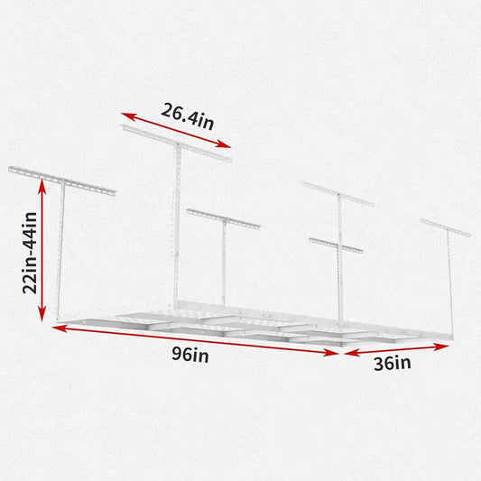 Heavy Duty Overhead Garage Storage Rack, Adjustable Organization System, Metal Garage Ceiling Storage Racks, White