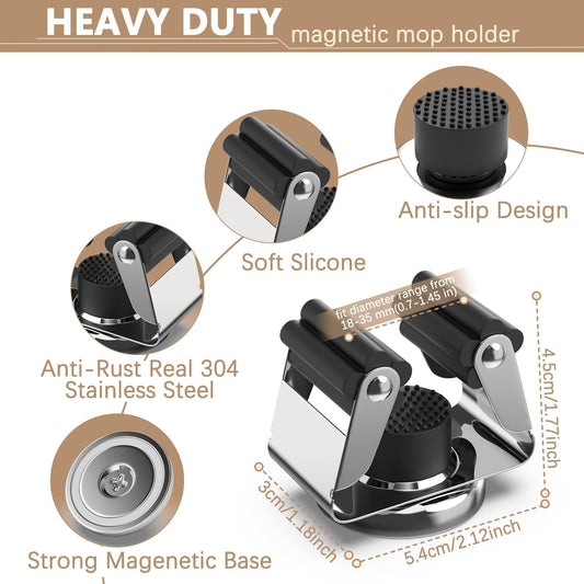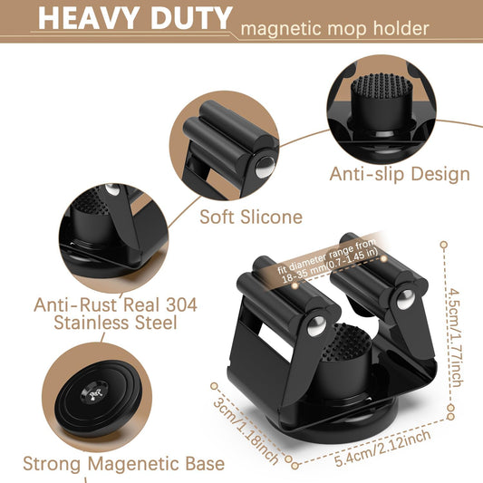 3-H Magnetic Broom Holder with Strong Magnetic Hook 4 Pack,Broom Holder Wall Mount for Garage Garden Shed Storage System Laundry Room Home Kitchen Organization