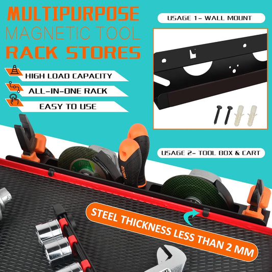 ULIBERMAGNET Magnetic Wrench Holder,Heavy Duty Red Magnetic Screwdriver Holder,Wrench Screwdriver Shear Organizer Rack Magnetic Mount Multiple Tools Rack for Garage,Tool Cart,Pegboards,Workbench