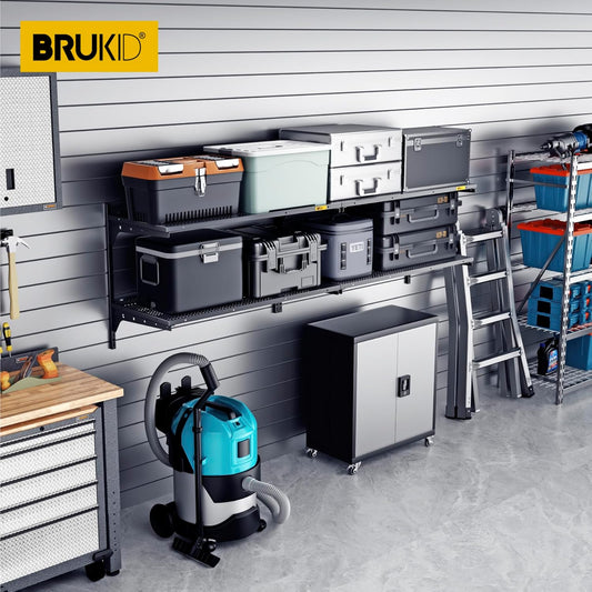 2 Tier 1.3x4ft Garage Shelving Wall Mounted, 400 lbs Load Capacity,15.6x48inch per Shelf Height Cassette Adjustable Floating Shelves(Black)