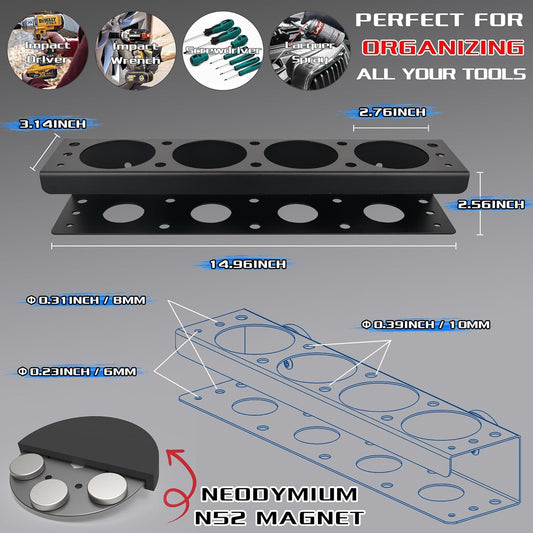 ULIBERMAGNET Power Tool Organizer Rack,Magnetic Heavy Duty Drill Holder,Wall Mount Metal Tool Rack with Screwdriver,Cordless Drill,Utility Rack for Warehouse,Garage,Toolbox