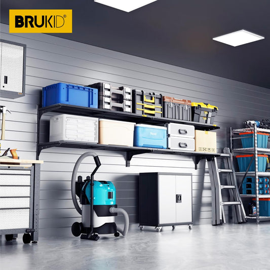 2 Tier 1.3x3ft Garage Shelving Wall Mounted, 400 lbs Load Capacity,15.6x36inch per Shelf Height Cassette Adjustable Floating Shelves(Black)