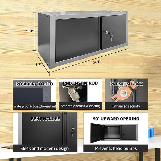 Metal Wall Cabinets with 2 Up-Flip Doors, Floating Steel Wall Mounted for Garage, Basement, Home Office, Kitchen, Warehouse - Black