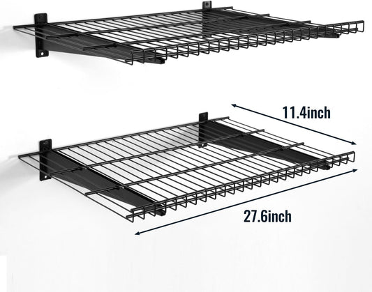 2 Pack Garage Wall Mounted Shelf, 27.6" x 11.4" Heavy Duty Wall Storage Shelves for Garage, Workshop, Laundry Room and Kitchen, Max Load 50 lbs (Black,2 Pack)