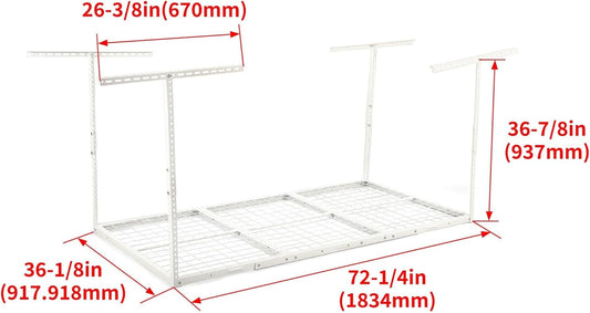 Kojem 3x6 Overhead Garage Storage Rack, 22'' to 40" Adjustable Heavy Duty Garage Ceiling Storage Racks Storage Organization System, 550LBS Weight Capacity, White