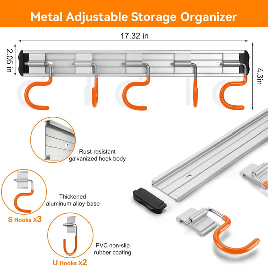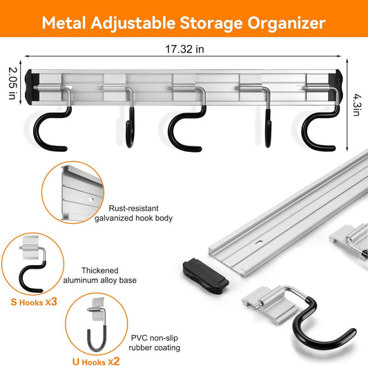 34.5'' Aluminum Alloy Garage Tool Organizer Hooks,Broom Holder Wall Mount, Adjustable Garden Wall Mount Holder for Hanging Shovel Broom Rake Bulk Items and More