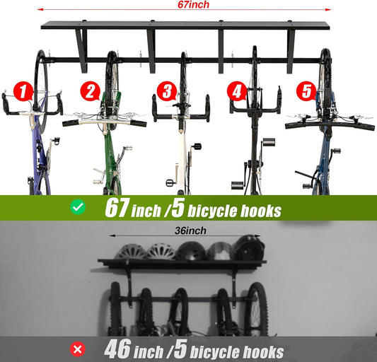 Bike Storage Rack with Shelf, Bike Wall Mount Garage Stand, Bike Hanger Storage Bicycles Hanger Hooks Bike Hooks for Garage Organizer