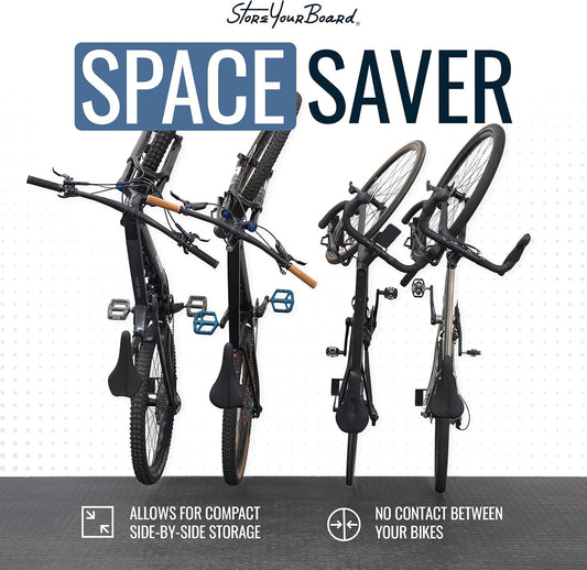 StoreYourBoard SwivelStow Bike Storage Rack 4 Pack, 2 MTB & 2 Road & Gravel Bike Wall Mounts, Heavy Duty Bike Hanger, No-Lift Bike Wall Mount for Garage Bike Storage, Holds 70 lbs, Patent-Pending