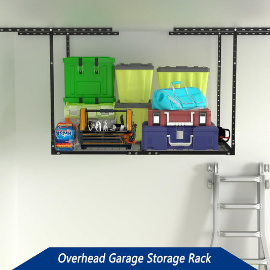 3 x 4FT Overhead Garage Storage Rack, Adjustable Ceiling Storage Racks, Garage Shelving Heavy Duty Storage Organizer System, 400lbs Weight Capacity (Black)
