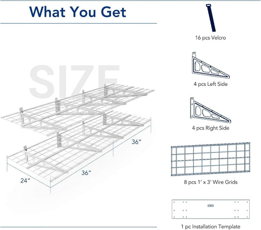 FLEXIMOUNTS 2-Pack 2x4ft 24-inch-by-48-inch Wall Shelf Garage Storage Rack Wall Mounted Floating Shelves, White