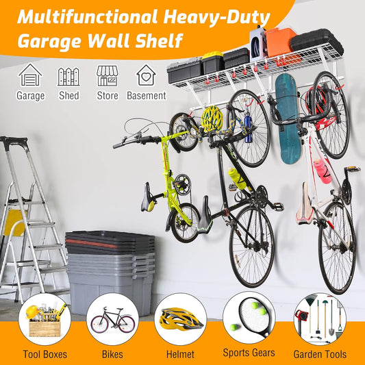 PLKOW Garage Wall Shelving 1 Pack Includes 2 Bike Hooks, Wall Shelves Garage Organizer with Vertical Bike Hanger, Powder Coated Steel (1 Pack)