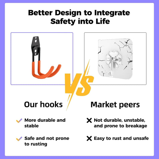 12 Pack Garage Hooks Heavy Duty Utility Steel with Anti-Slip Coating Wall Mount Storage Organizer for Hanging Power and Garden Tools, Ladders, Hose, Bikes, Ropes, Bulk Items, and More