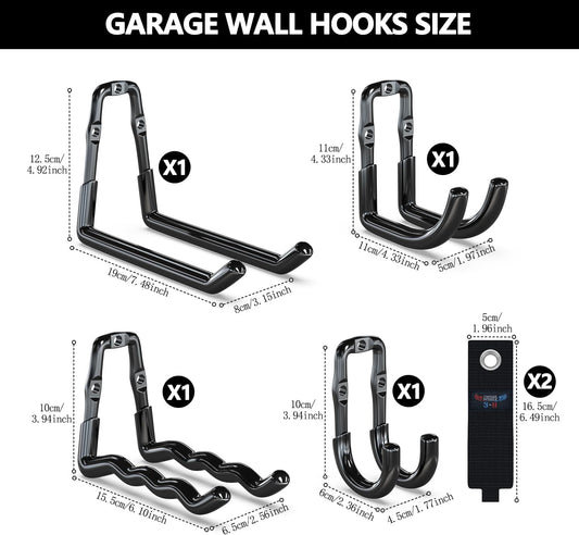 Garage Tool Storage Wall Hook Assortment Set: 15PCS Heavy Duty Large Hanger Garden Tool Organizer Ladder Bike Rack Yard Tool Holder Shed Shovel Metal Screw Organization Bicycle Steel Bracket
