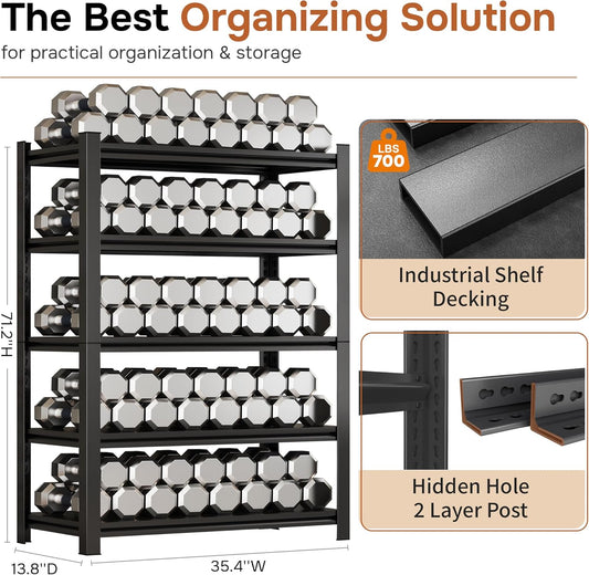 3500 LBS Garage Shelving Heavy Duty 5-Tier Adjustable Storage Shelves Unit,71''H Metal Utility Rack Shelf for Industries, Warehouses, Basement,Black (71.2''H x 35.4''W x 13.8''D)