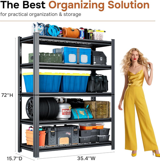 2500LBS Garage Shelving Heavy Duty 35.4"W Storage Shelves 5 Tier Heavy Duty Shelving Adjustable Garage Shelves for Basement, Warehouse, Commercial, Easy Assemble, 35.4" W x 71.2" H x 15.4" D