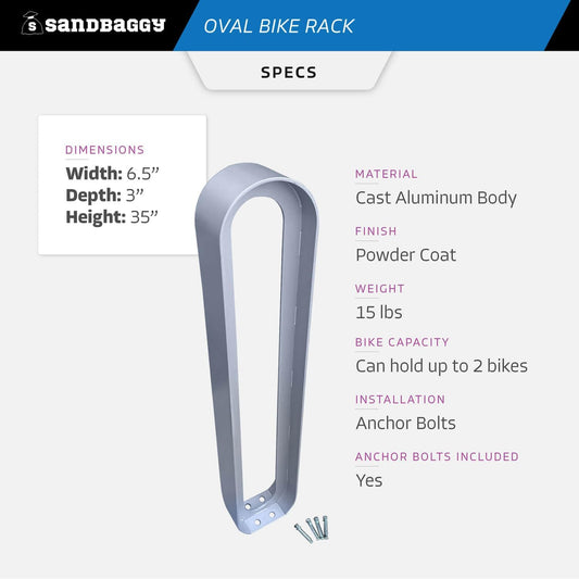 Sandbaggy Modern Commercial Bike Rack | 6.5” x 3” x 35” Oval Design | In-Ground | Anchor Bolts Included (White, 1)
