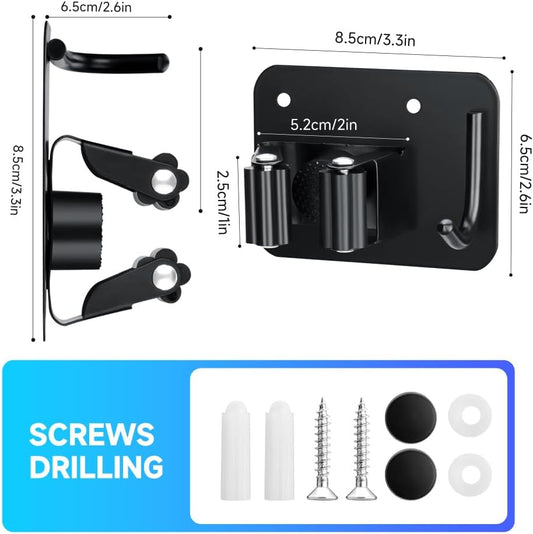 2-Pack Broom Holder with Heavy Duty Hooks, Upgraded Stainless Steel Mop Hanger. Wall Mount Utility Tool Rack for Kitchen Garden Laundry Garage. Matte Black.