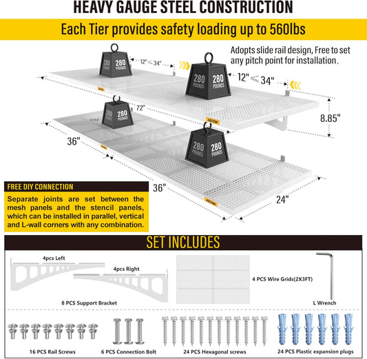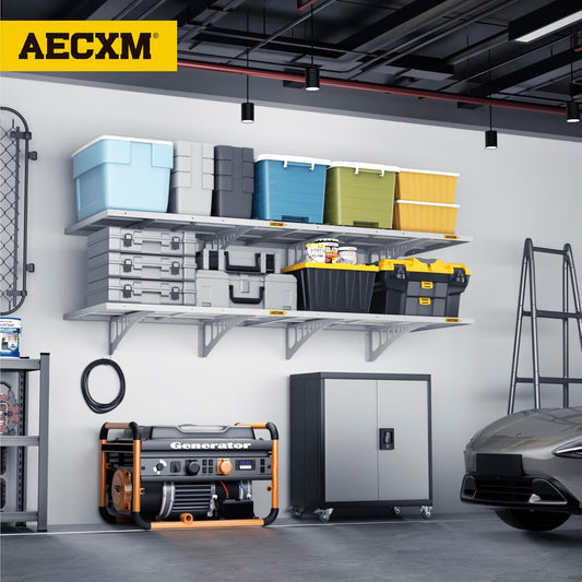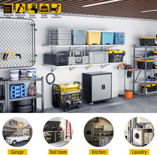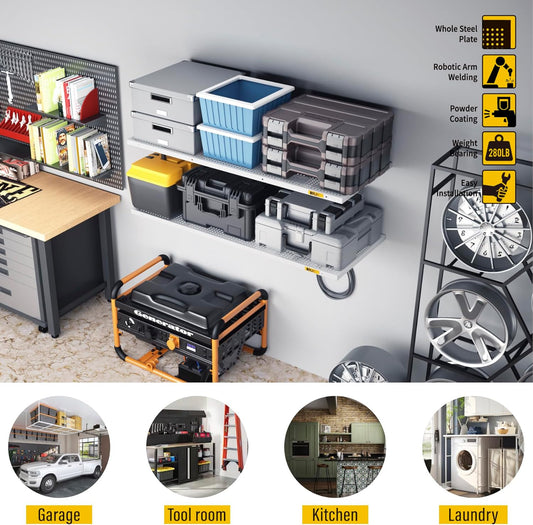 2-Pack 2x4ft Garage Wall Shelving, 2 Shelf Total 8 ft(L) Garage Wall Storage, Heavy-Duty Storage Shelves, Perfect for Holding Storage Bins, Boxes, Sporting Goods, Tools, and More. Space-Saving