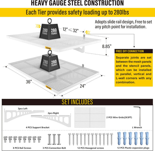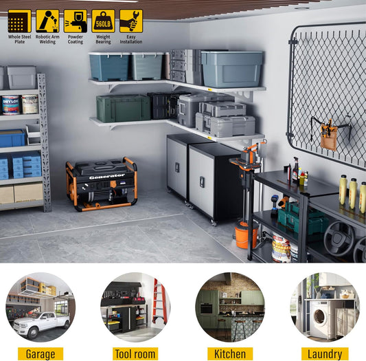 2-Pack 2x3ft Adjustable Garage Wall Shelving 560lbs Load Capacity Heavy Duty Wall Mounted Storage Shelf Metal Floating Shelves for Garage(White)