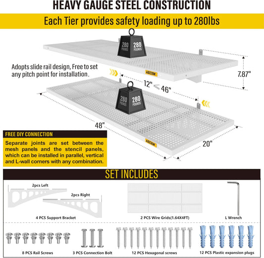 2-Pack 1.64x4ft Adjustable Garage Wall Shelving 560lbs Load Capacity Heavy Duty Wall Mounted Storage Shelf Metal Floating Shelves for Garage(White)