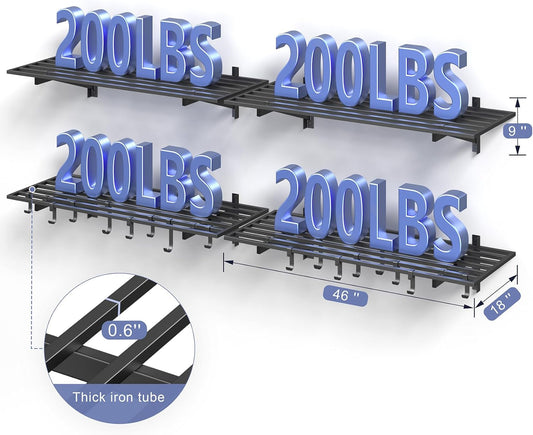 2x4ft Heavy Duty Garage Shelving, 2' x 4' Garage Wall Shelving Wall Mounted, 200LB Capacity Storage Rack with Hooks (1pack-2x4ft)