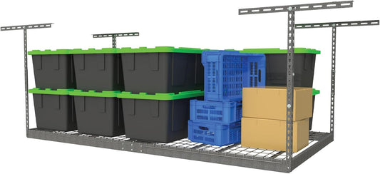 MonsterRax Overhead Garage Storage Rack - 4 x 8 Ceiling Racks for Garage, Organization Shelving, Hanging Shelf, Grey, 24"-45" Height Adjustment