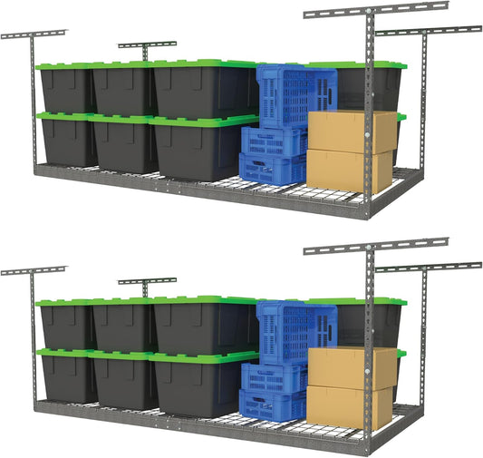SafeRacks 4x6 Overhead Garage Storage Rack - Heavy Duty Steel Ceiling Mount Storage Shelves with 500 lb Capacity - Adjustable, Garage Overhead Storage, 12"-24" 2 Pack