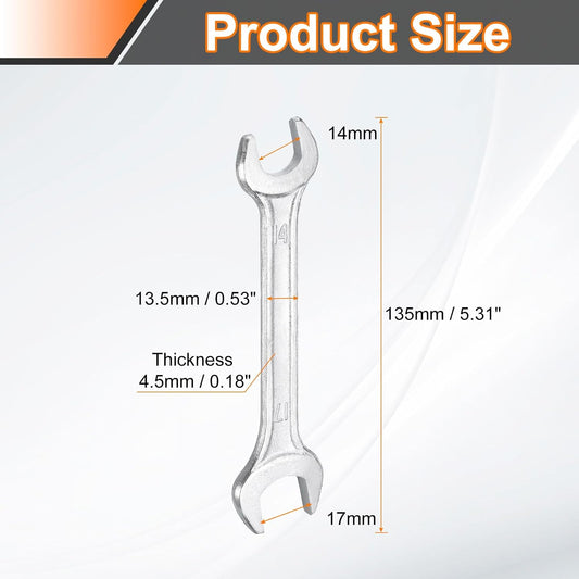 HARFINGTON Double Open End Wrench 14mm x 17mm Metric 15 Degree Offset Angle Small Flat Head Wrench Galvanizing Open Ended Spanner for Automotive Repair Furniture Assembly