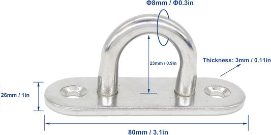 Stainless Steel Ceiling Hooks & Wall Hangers with Rings - Heavy Duty M8 Screw Mount, Rust-Proof Anchor Straps for Garage, Outdoor, Storage (4-Pack)