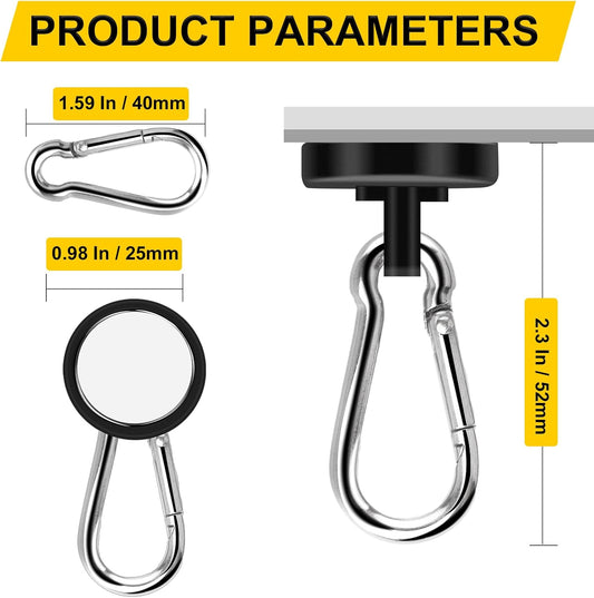 DIYMAG Black Magnetic Hooks, 150LBS Strong Heavy Duty Neodymium Magnet Hooks with Swivel Carabiner Hook, Great for Your Refrigerator and Other Magnetic Surfaces-36mm Diameter