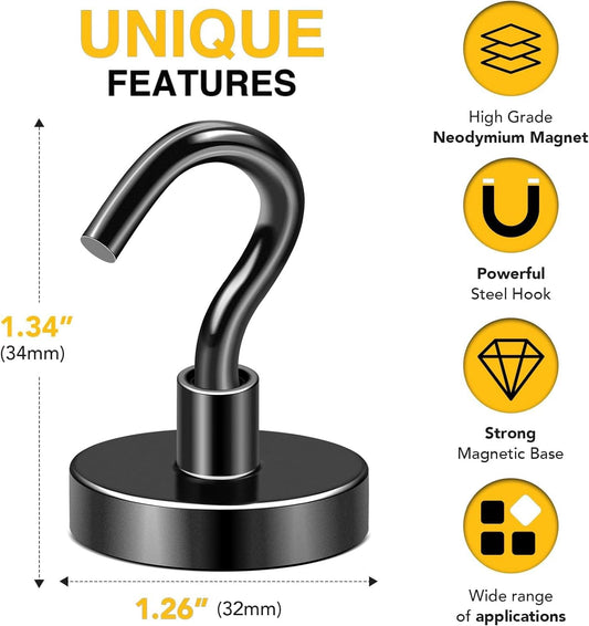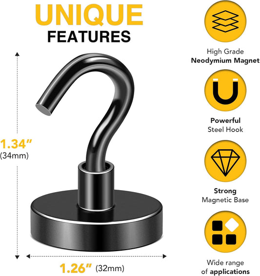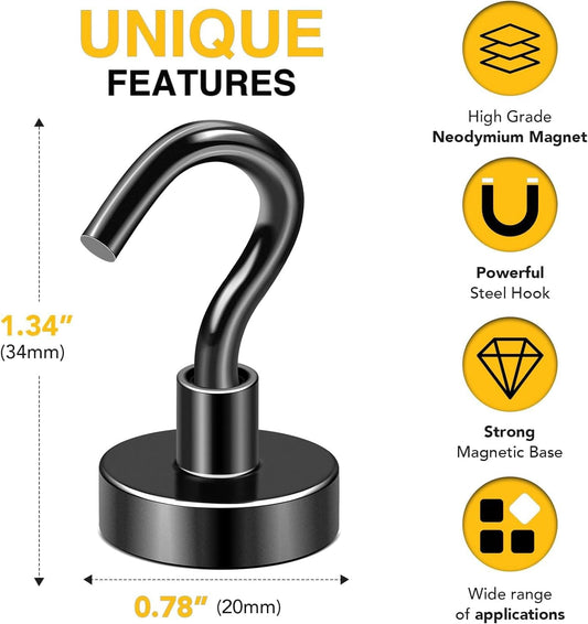 DIYMAG Black Magnetic Hooks, 118 LB Heavy Duty Strong Magnet with Hook, Rare Earth Neodymium Magnets for Hanging, Magnetics Hanger for Curtain, Home, Kitchen, Workplace, 20 Packs