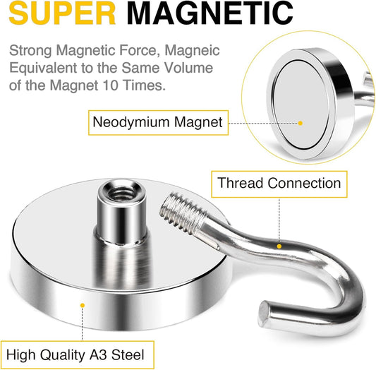 DIYMAG Magnetic Hooks, 150 LB Heavy Duty Strong Magnet with Hook, Rare Earth Neodymium Magnets for Hanging, Magnetics Hanger for Curtain, Home, Kitchen, Workplace, 10 Packs